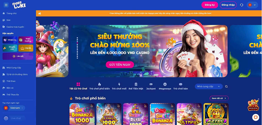 Để nói đến nhóm game có số lượng trò chơi nhiều nhất tại cổng cược phải kể đến Slots game. Sân chơi Happyluke sở hữu nhiều game cược mang các màu sắc riêng biệt cùng nhiều tính năng thú vị. Trong đó, các nhóm game cược có lượt truy cập hàng đầu tại đây gồm: